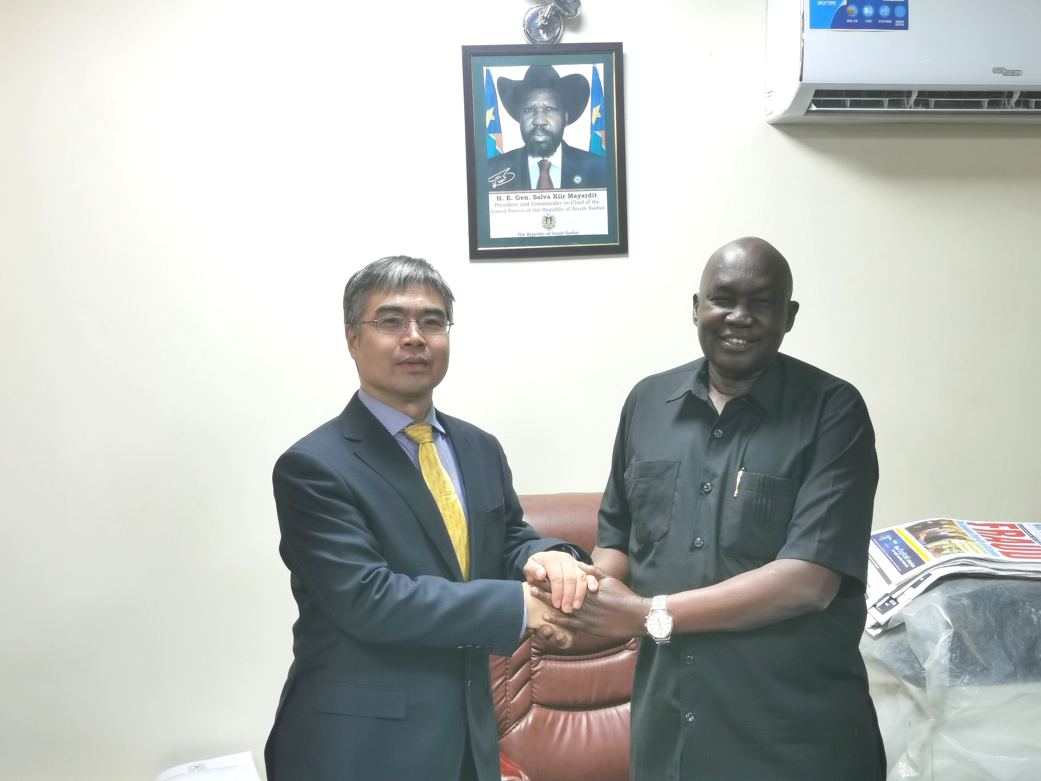 9月18日,霍颖代办、李万成参赞出席中国石油非洲公司向南苏丹团结州捐赠洪灾救助物资交接仪式。