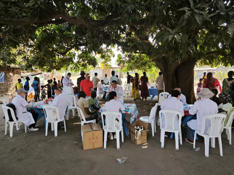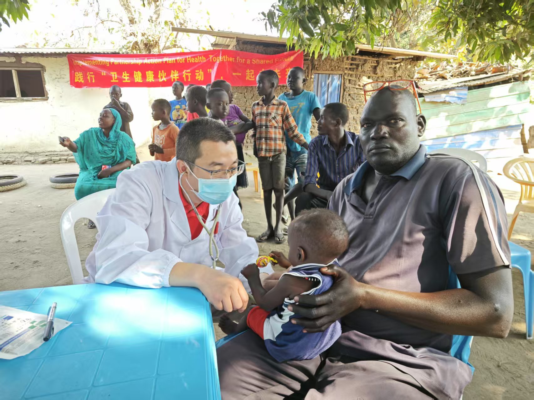 1月25日,中国第十二批援南苏丹医疗队组织内、外、妇儿等多学科医疗队员赴朱巴市郊纳巴里社区开展以“践行卫生健康伙伴行动,一起向未来”为主题的大型义诊活动。因场地简陋,当地工作人员只能在一棵大芒果树下摆上简易的塑料桌椅,作为临时工作场所。当得知中国医疗队前来义诊的消息,社区民众早早排起了长队等候就诊。医疗队队员为前来问诊的居民量血压、测血糖、查疟疾、问病史,进行身体检查,对民众关心的健康问题用通俗易懂的语言进行了详尽解答,免费为就诊民众发放药品,还对霍乱、伤寒等传染病的预防措施及注意事项进行宣传。当天的义诊活动,共接诊当地患者超400人次。纳巴里社区负责人表示,热烈欢迎中国医疗队的到来,感谢中国医生为这里的民众送来关爱和健康,减轻了社区民众治疗疾病的经济负担,希望中国医疗队能够常来。援南医疗队负责人表示,今后医疗队将常态化开展义诊活动,用耐心细致、有温度的医疗服务,“零距离”服务当地民众,扎实推进援南医疗队“百队千村”计划,让中国援外医疗的“金字招牌”熠熠生辉。义诊活动结束后,全体医疗队员和现场的当地孩子们一起合唱了《新年好》、《小苹果》、《中国援南苏丹医疗队队歌》等歌曲。