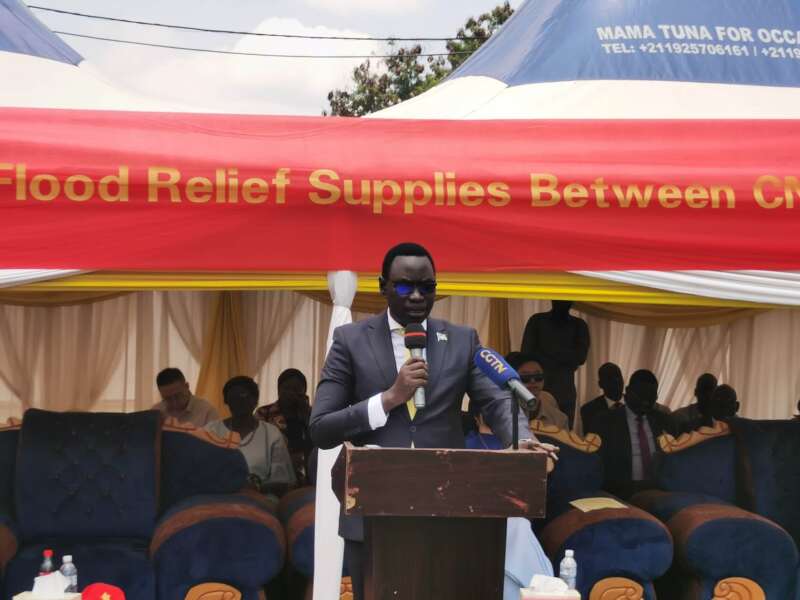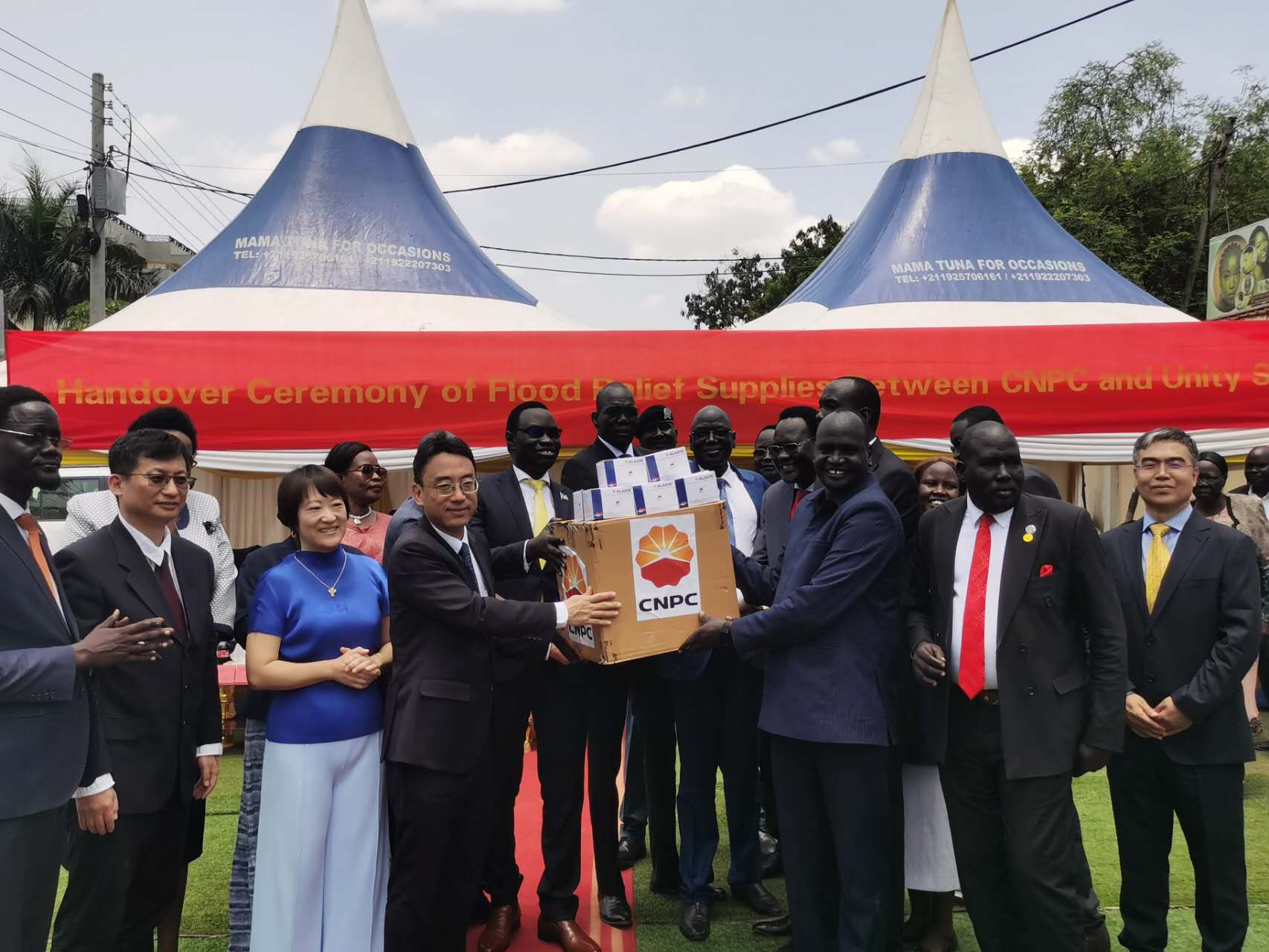 9月18日,霍颖代办、李万成参赞出席中国石油非洲公司向南苏丹团结州捐赠洪灾救助物资交接仪式。